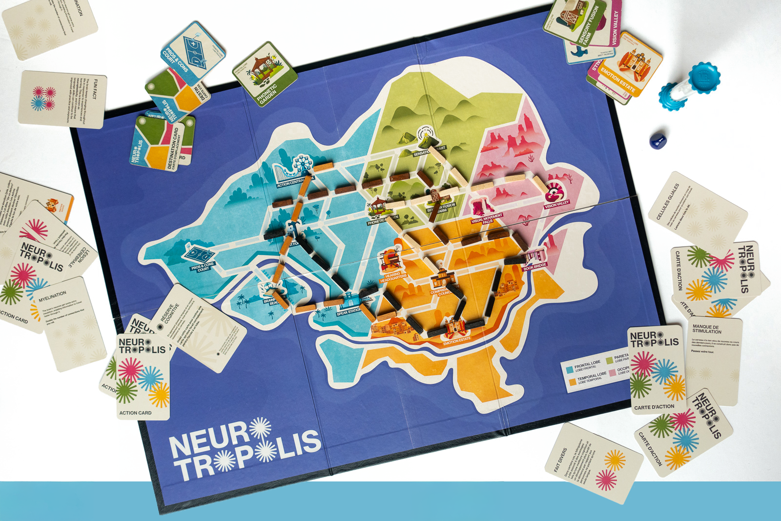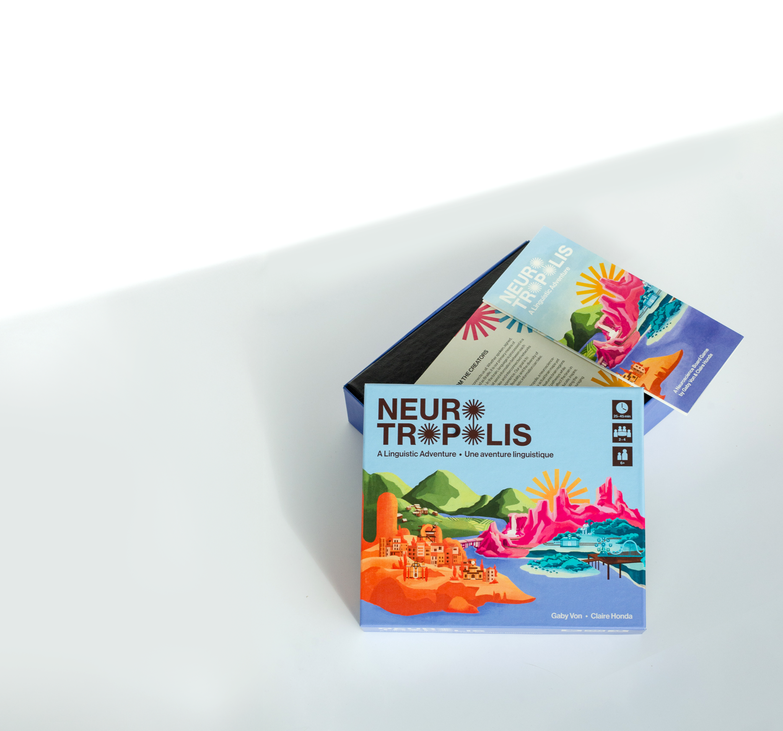 Neurotropolis: A Linguistic Adventure is a board game co-created by neuroscientist Claire Honda and designer Gaby Von. Born from a shared passion for science communication and fostering human connection, the game blends neuroscience and play to explore how language is processed in the brain, while conveying concepts of neurodiversity and neuroplasticity.