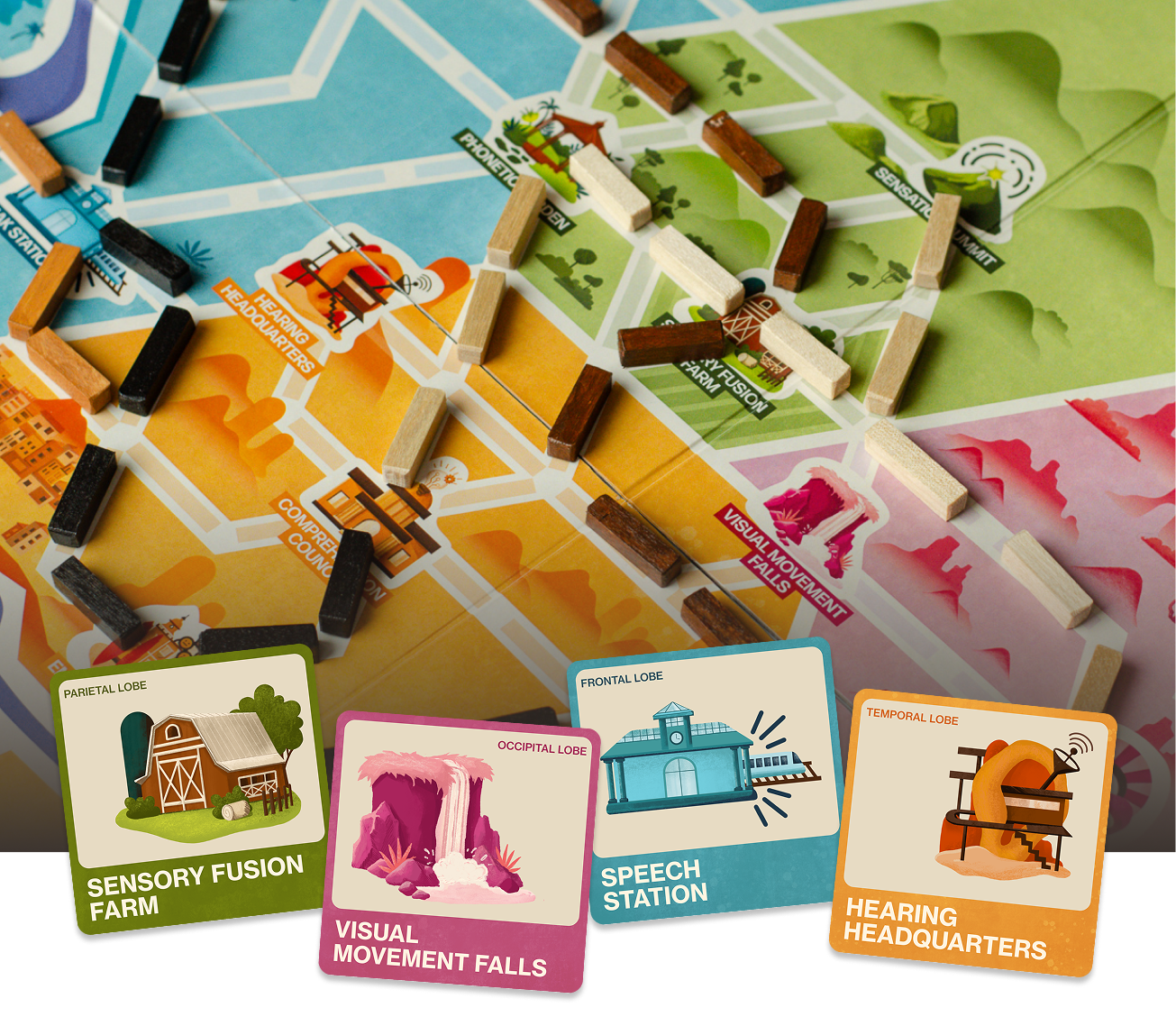 Use cognitive abilities to shape powerful strategies. Action cards let you place tracks and interact with the board. Each move reflects real cognitive processes, turning neuroscience into strategic play.